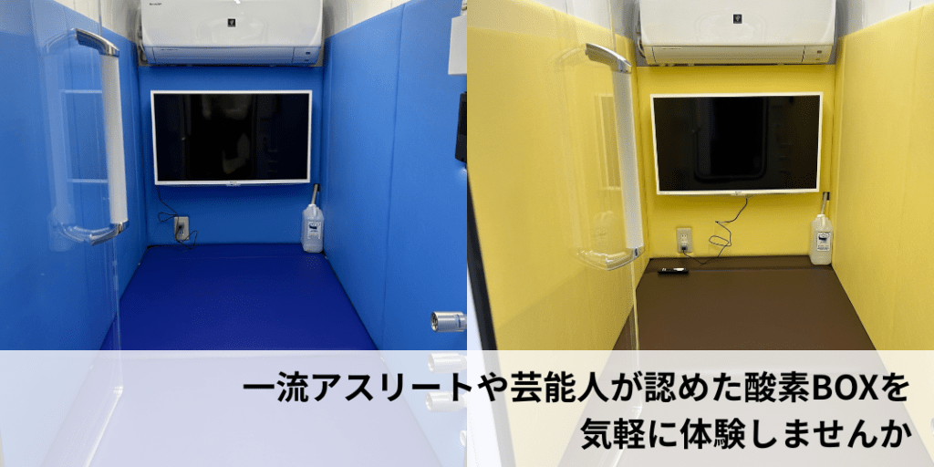 酸素カプセルは酸素ルーム(ボックス)型で、中の広さはシングルの布団程度の広さです。閉所恐怖症の方でも、大丈夫な場合が多いです。