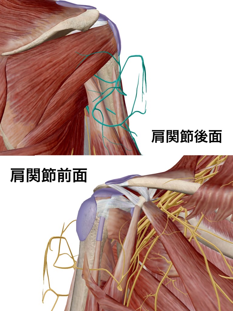 肩関節の周りの筋肉は、神経の通り道を形成しています。