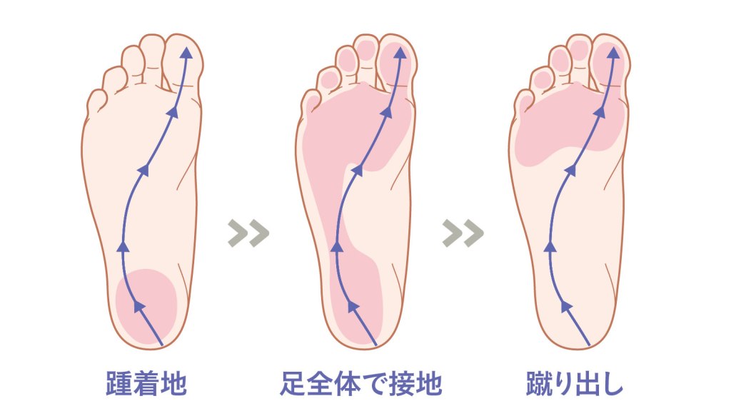 歩いている時につま先が大きく外側を向いてしまってる場合、歩行で後に蹴ると足の内側部に負担が掛かりやすくなります。