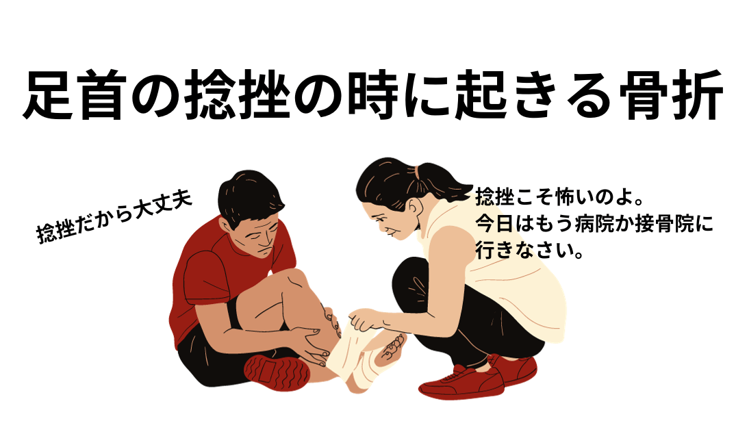 足をグキっと捻った事がある方は多いのですが、そこで「あー捻挫だから大丈夫でしょ」と、思い込んでしまうと、実は骨が折れてましたと言う時になかなか気づきにくくなってしまうので、捻挫の時も骨折は起きるかもと知識として持っておくと良いと思います!