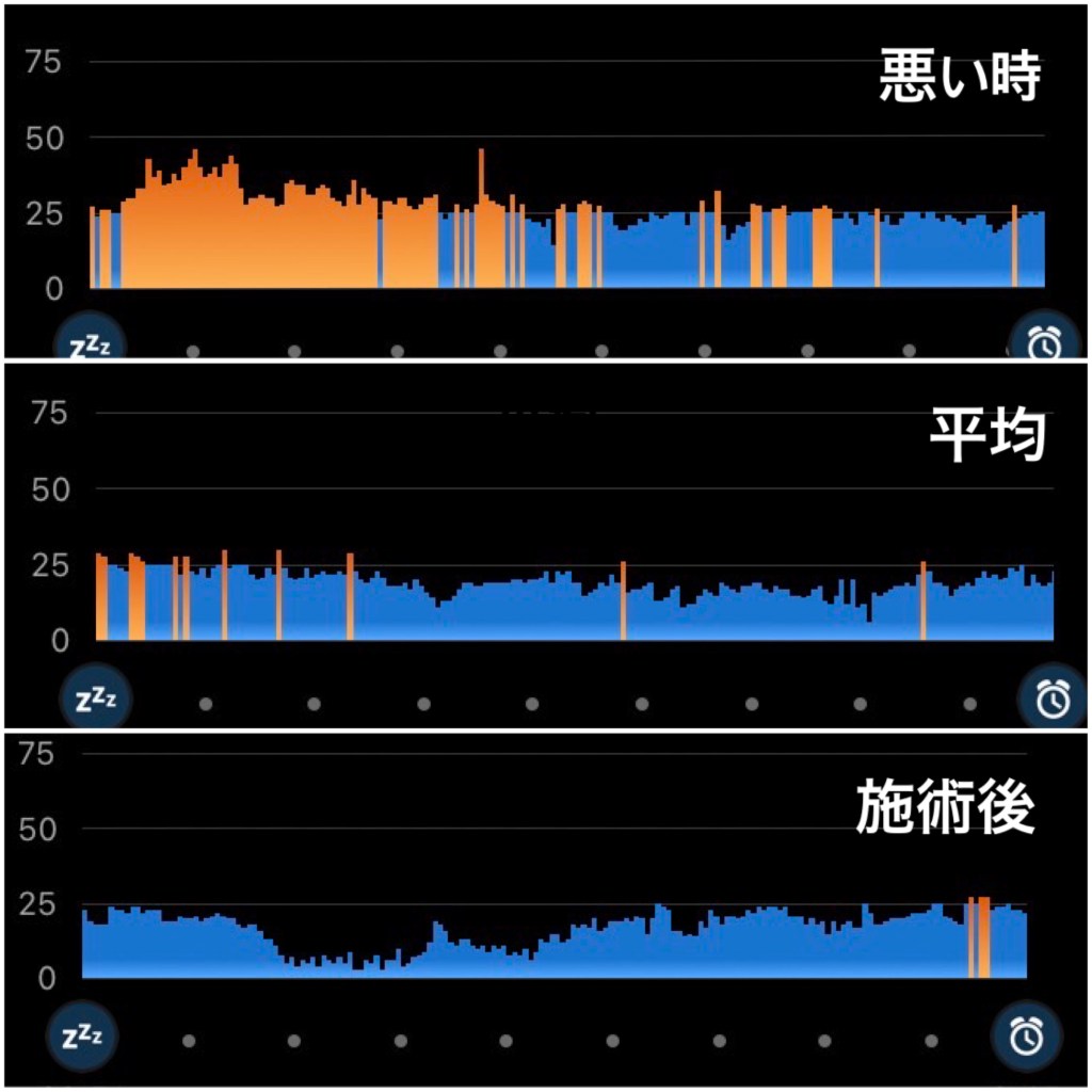 平均値と比べてもオレンジの部分が少なくなっており、熟睡できていることがわかります。